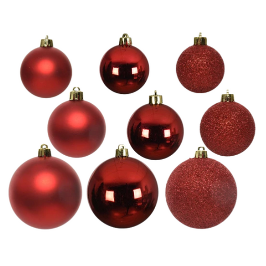 Palline di Natale Colore- Rosso- Set 26 Palline Glitter-Lucide-Opache- 020741