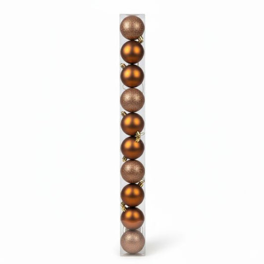 Palline di Natale Caramello- 6 cm - 10 pz - Lucido, Glitter & Opache