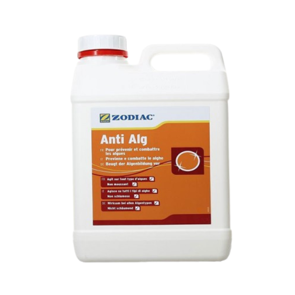 Zodiac Anti Alghe è un prodotto liquido specifico per prevenire e contrastare la formazione di alghe sulle pareti e sul fondo della piscina. La sua formula a base di composti polimerici di ammonio quaternario (concentrati al 10-15%) garantisce un’azione efficace e duratura contro le proliferazioni algali.