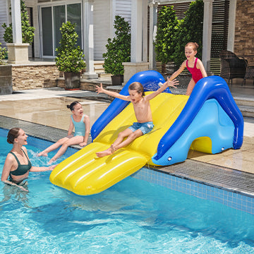 • Ampia Superficie di Scivolamento: Le dimensioni generose permettono ai bambini di scivolare comodamente, aggiungendo un elemento di avventura alle loro giornate in piscina.