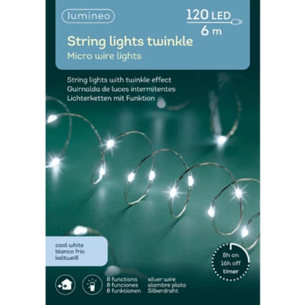 Dai luce alle tue decorazioni natalizie con la Catena Luminosa 120 Micro LED Bianco Freddo, perfetta per portare un tocco di magia e brillantezza nei tuoi spazi festivi.