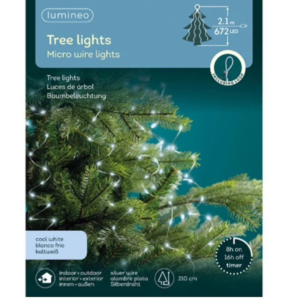 Dai luce al tuo albero di Natale con il Grappolo di Luci 672 Micro LED Bianco Freddo, perfetto per portare un tocco di magia e brillantezza nei tuoi spazi festivi.