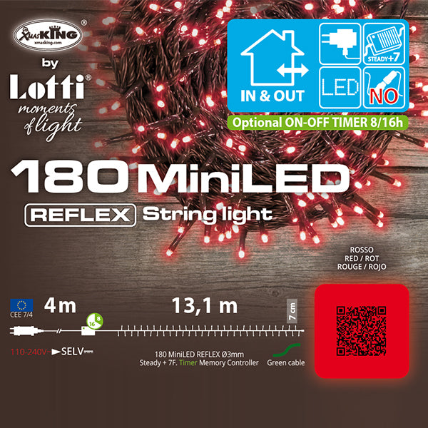 Catena Luminosa 180 LED Rosso 13,1 mt - 32484