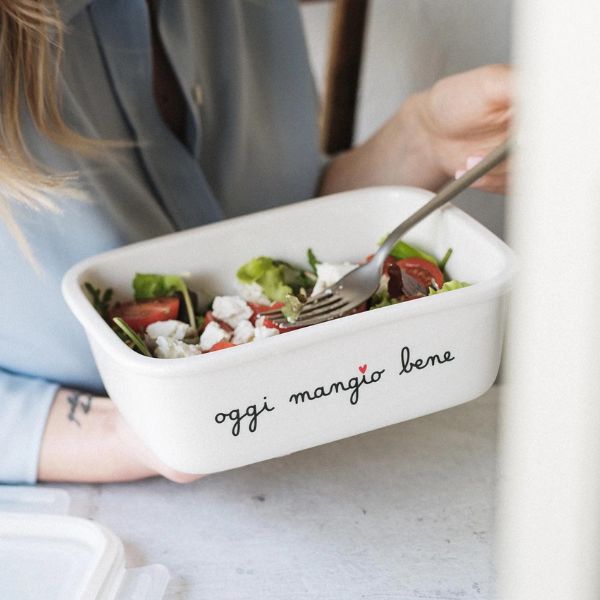 Contenitore in Gres – Decoro “Oggi mangio bene” – Taglia L