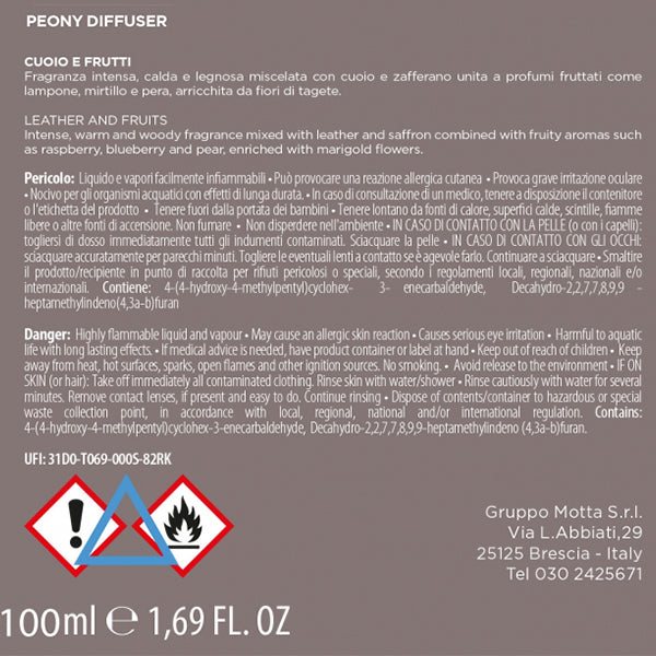 • Bottiglia: Vetro con diffusore a forma di peonia in legno di betulla