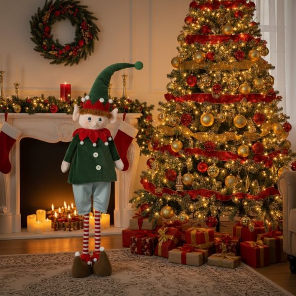 Realizzato in poliestere di alta qualità, questo simpatico elfo in piedi di colore verde si distingue per i suoi dettagli curati e per le gambe estendibili, che ti permettono di regolarne l’altezza in base allo spazio o alla decorazione desiderata.