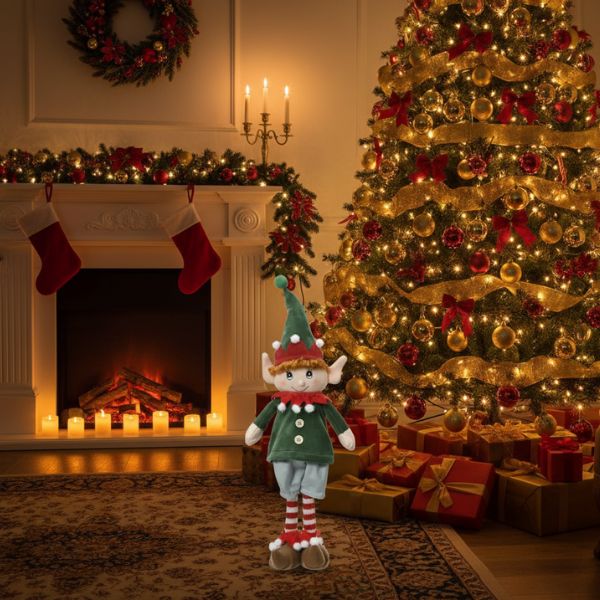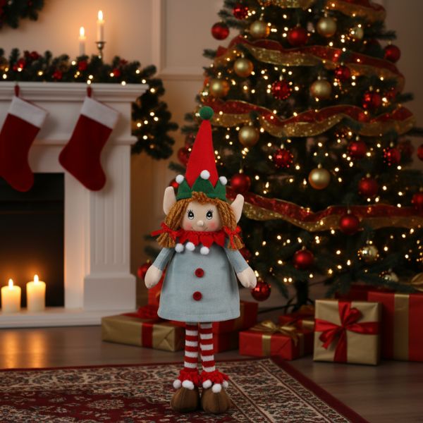 Con le sue dimensioni di L.22 cm x P.11 cm x H.60 cm, è ideale da posizionare su mensole, camini, tavoli o accanto all’albero di Natale. Le gambe penzolanti aggiungono un tocco giocoso e naturale, rendendolo perfetto sia per la casa che per vetrine e allestimenti natalizi.