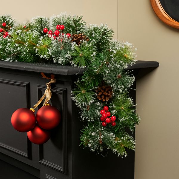 Porta la magia del Natale nella tua casa con il festone Ipswich frosted indoor, perfetto per decorare mensole, camini, ringhiere o porte d’ingresso interne. Realizzato con aghi rigidi e punte in PVC di alta qualità, questo festone riproduce fedelmente l’aspetto naturale dei rami di abete, impreziositi da pigne decorative e da un elegante effetto innevato (frosted finish) che dona un tocco raffinato e autentico alle tue decorazioni.