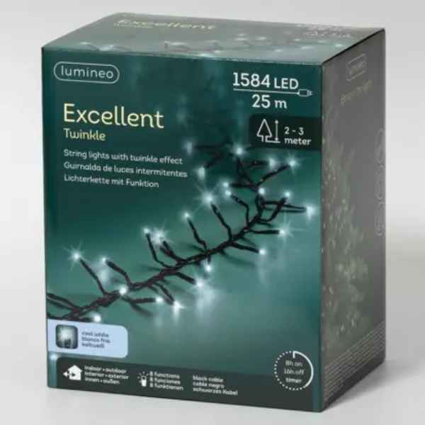 Dona un tocco di magia e luminosità alle tue decorazioni con la Catena Luminosa 1584 LED Excellent Bianco freddo – la soluzione perfetta per un Natale scintillante e di classe.