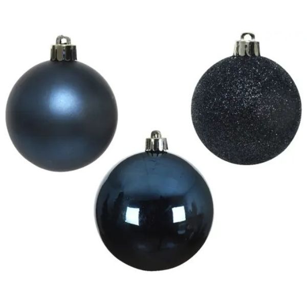 Palline di Natale Blu- 6 cm - 10 pz - Glitter, Lucide & Opache
