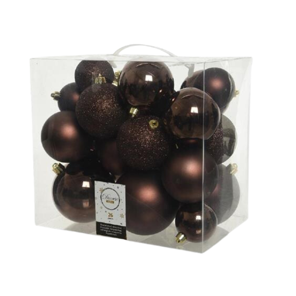 Set di 26 Palline di Natale Marroni – Shiny, Matt e Glitter