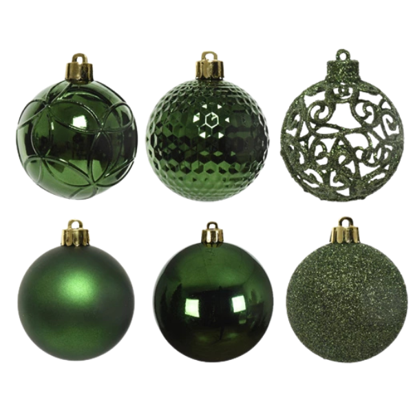 Palline di Natale Colore Verde Scuro - Set 37 pezzi- 6 cm- Glitter- Lucide- Opache-020811