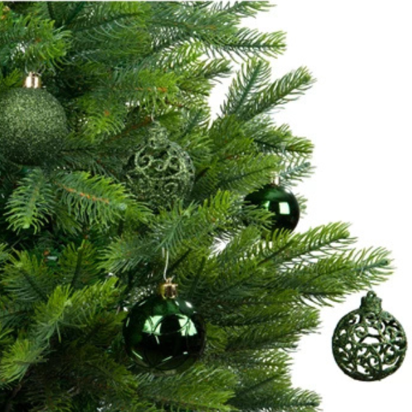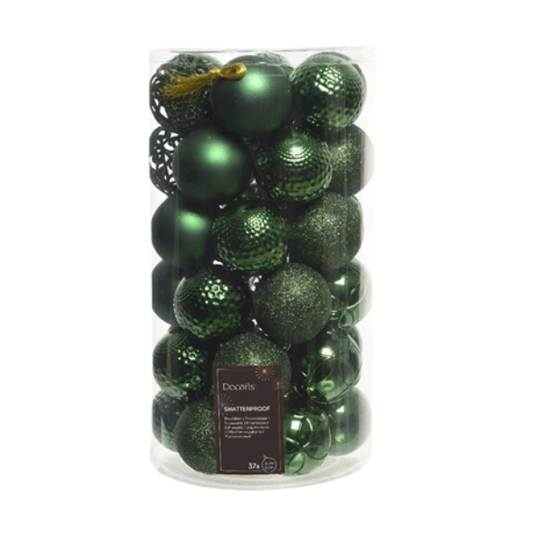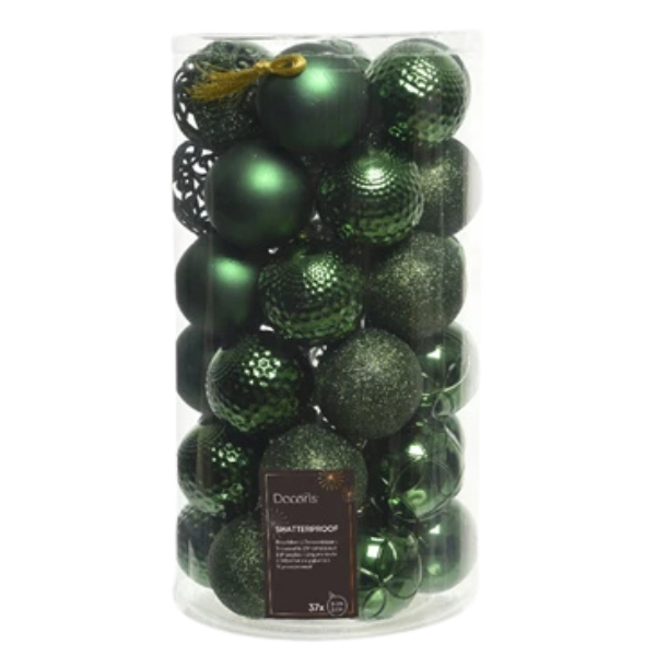 Set di 37 Palline di Natale da 6 cm in Verde Scuro – Shiny, Matt, Glitter e Decorate