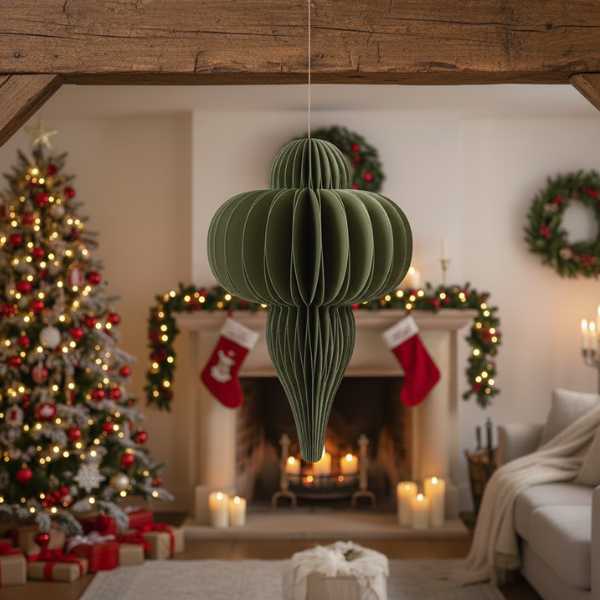 Aggiungi un elemento elegante e scenografico ai tuoi allestimenti natalizi con questa raffinata decorazione in carta Verde dalle dimensioni importanti: Ø 24 cm – H 80 cm. Realizzata interamente in carta 100%, è leggera, moderna e perfetta per creare movimento e verticalità in casa o per allestimenti in negozi..