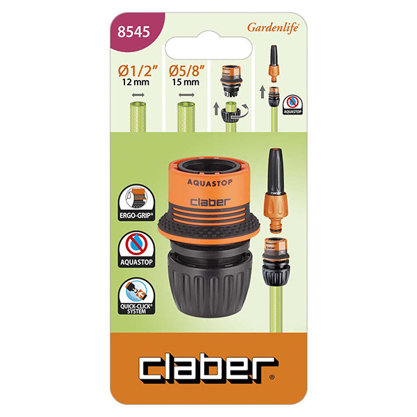 Questo raccordo Ergogrip automatico è progettato per unire tubi da giardino con diametri di 1/2” (12,5 mm) e 5/8” (15 mm). La sua superficie gommata con puntini in rilievo offre un'ottima aderenza e maneggevolezza, perfetta anche con le mani bagnate. La funzione Aquastop interrompe automaticamente il flusso dell'acqua quando il raccordo viene scollegato, ideale per cambiare gli accessori senza dover chiudere il rubinetto.