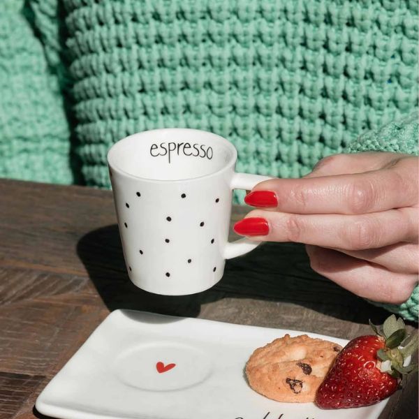 Per noi italiani l’espresso è un rito quotidiano irrinunciabile, e questo Set 2 Tazzine Espresso decoro Pois Espresso è perfetto per servire e gustare il tuo caffè ogni giorno con stile.