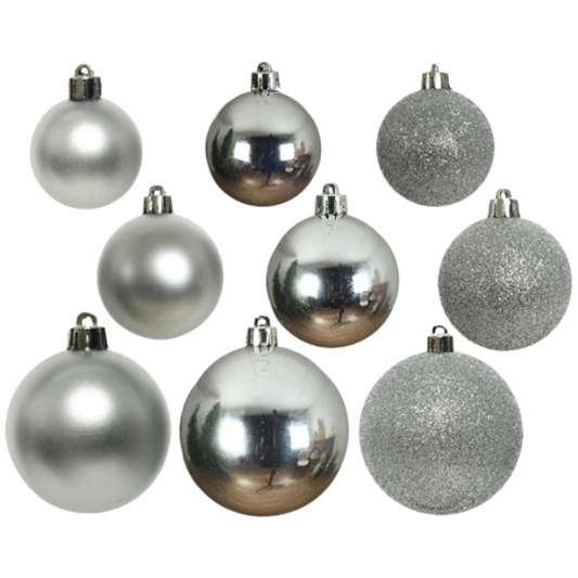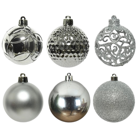 Palline di Natale Colore Argento- Set 37 pezzi- 6 cm- Glitter- Lucide- Opache- 020801