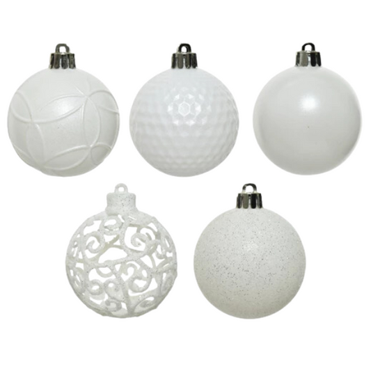 Palline di Natale Colore Bianco- Set 37 pezzi- 6 cm- Glitter- Lucide- Opache- 020804