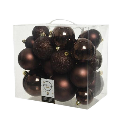 Palline di Natale Colore: Marrone- Set 26 Pezzi- Glitter- Lucide- Opache- 02.0614