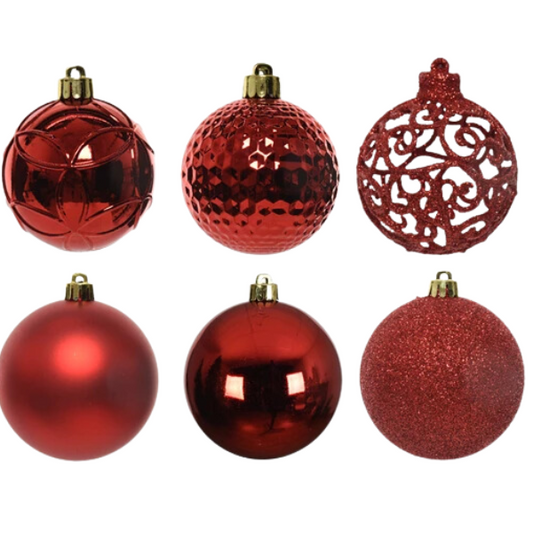 Palline di Natale Colore Rosse- Set 37 pezzi- 6 cm- Glitter- Lucide- Opache- 020802